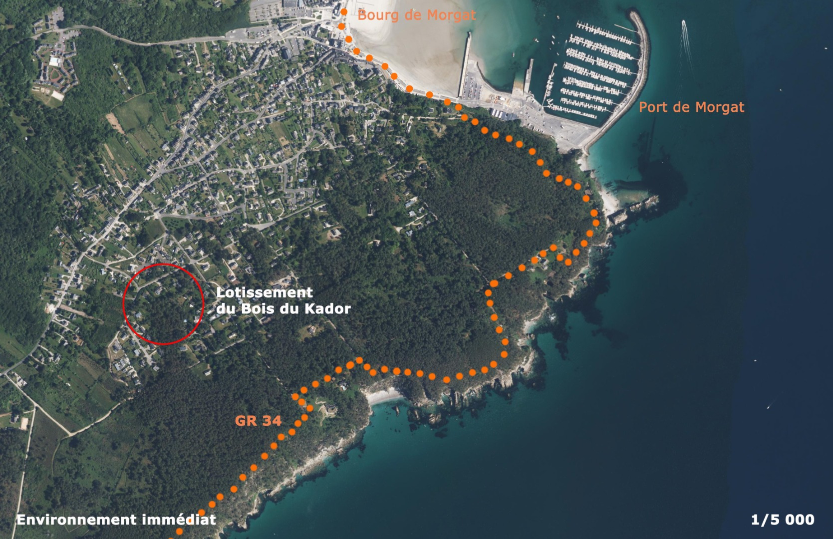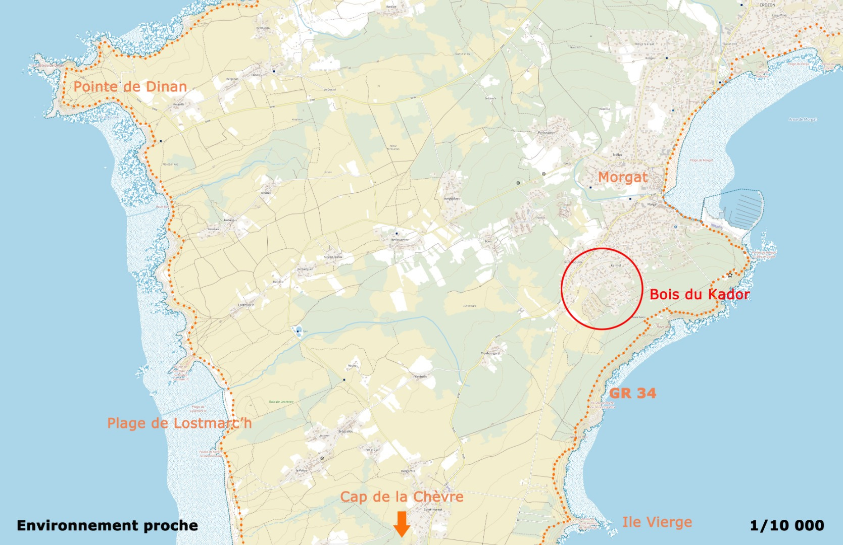 La flore indigène du terrain est composée majoritairement d’ajoncs, de bruyères et de pins : elle témoigne de la flore singulière à la presqu’île de Crozon, en contrepoint indissociable de la géologie accidentée du relief côtier :